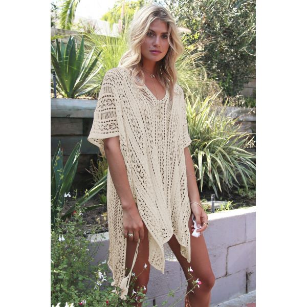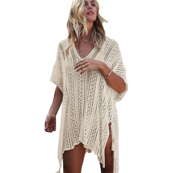 This cute and stylish swimsuit cover up is the perfect go to for this upcoming summer! Designed with sexy see-through, detailed knit pattern and comfortable loose fit. Features include wider sleeves and lace up sides with tassel tie closure. Beautiful crochet beachwear for women. This hollow-out beach dress is in a comfortable loose fit. Chic crochet knit with side split and tassel tie detail. |