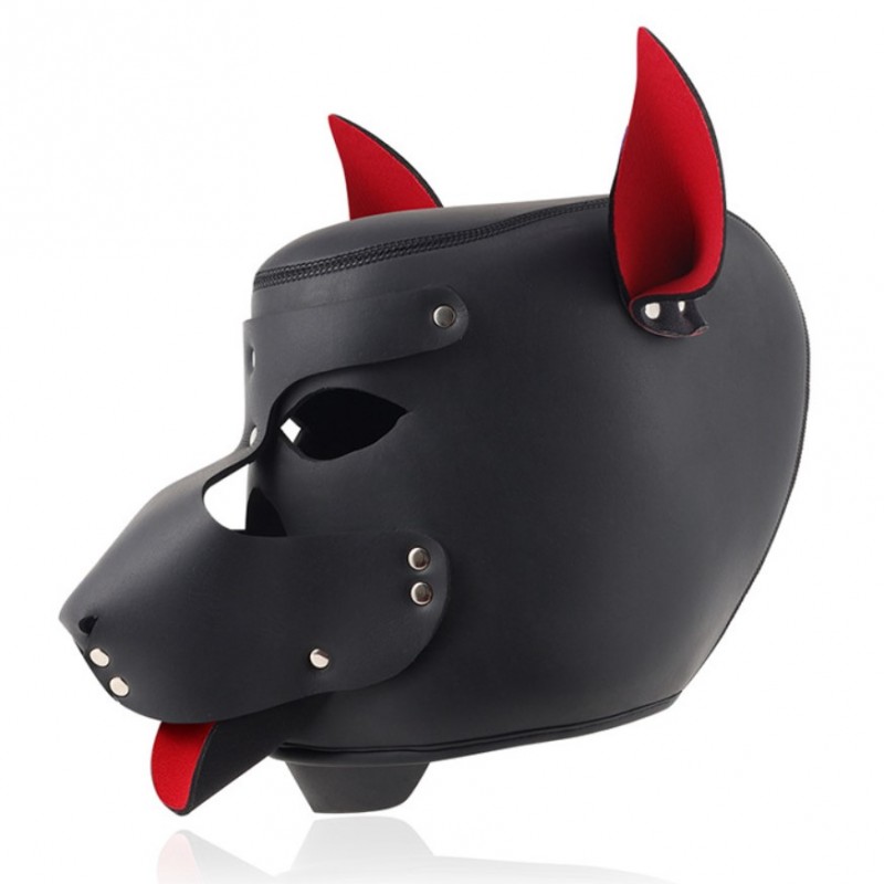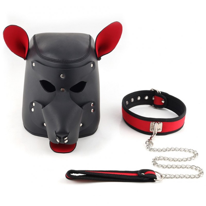 Mask / BDSM mask with collar Neoprene Dog Headgear Collar Red