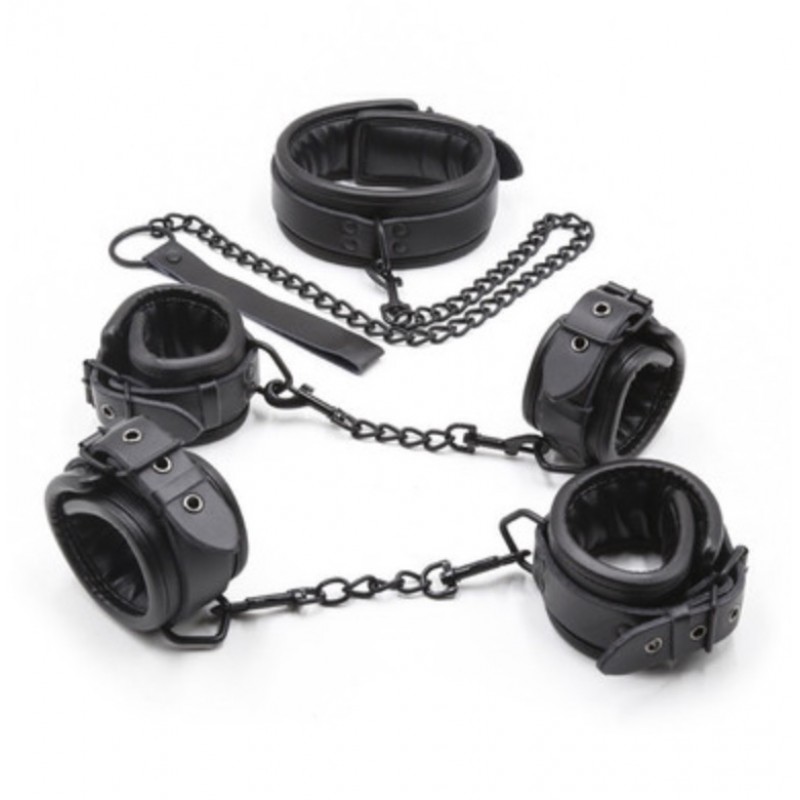 Kits and sets / BDSM Set Of Collar, Handcuffs And Cuffs On A Black Chain