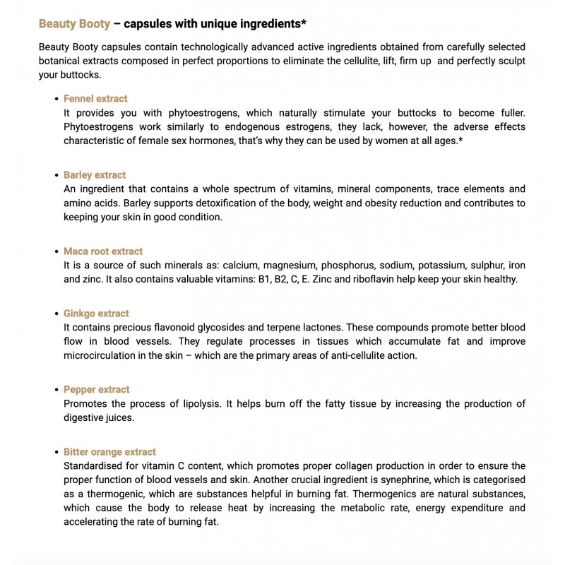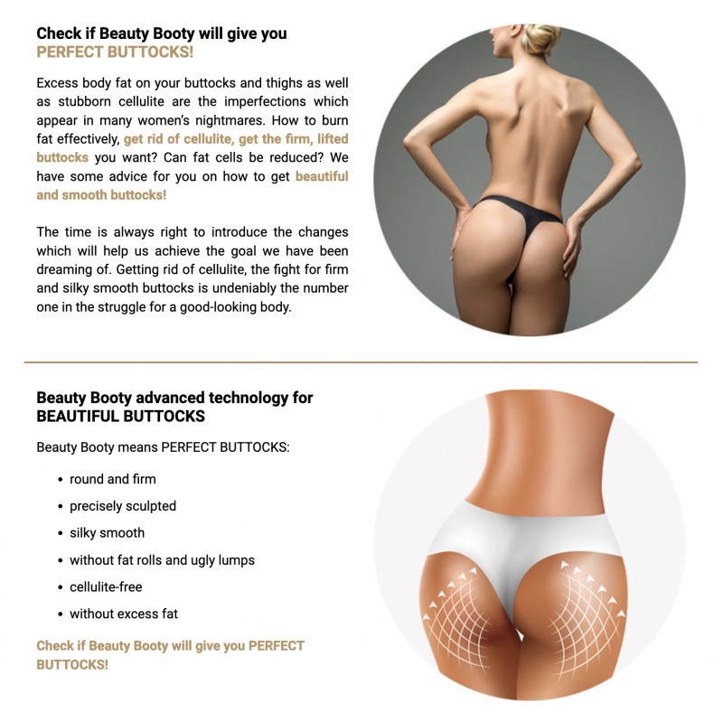 Beauty Booty is an effective product that improves the appearance of the buttocks. The capsules were described as very effective by 79% of people who took them. Many users noticed results within the first week of use. Study participants confirm that the buttocks after using the products are: more elastic, toned, rounded, sculpted, without fat pads, without cellulite. in many womens nightmares. How to effectively burn fat, get rid of cellulite, and get the firm, toned buttocks you dream of? Is it possible to reduce fat cells? We have some tips on how to get beautiful and smooth buttocks! It is always time to make changes that will help us achieve the goal we have dreamed of. Getting rid of cellulite, the fight for elastic and silky smooth buttocks, is undoubtedly number one in the fight for a beautiful body.