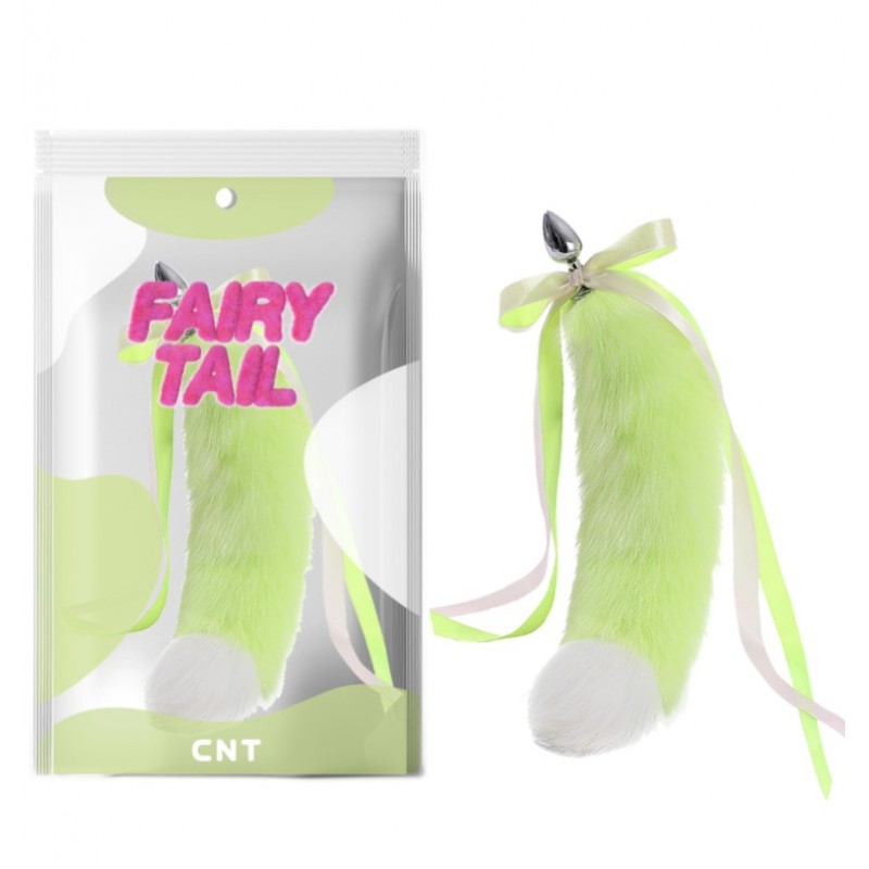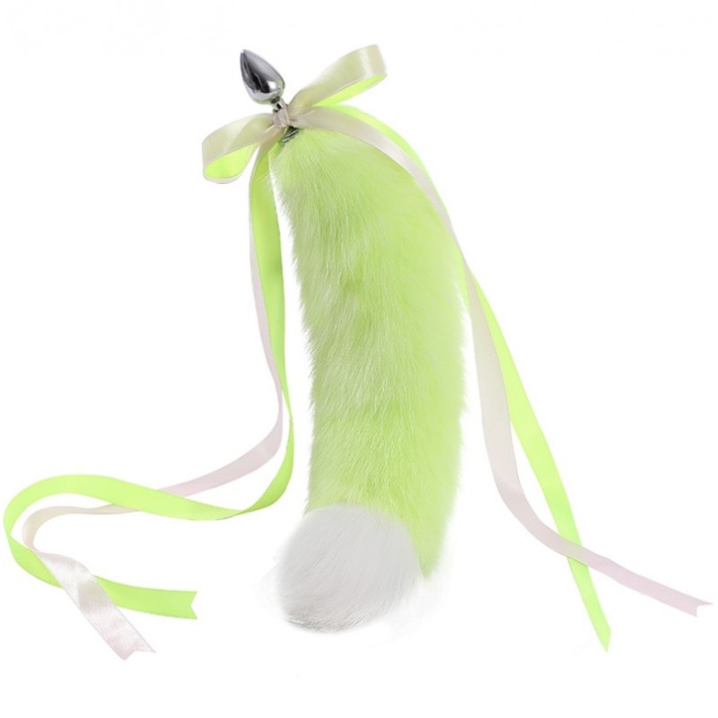 Anal toys / Bicolor Foxs Tail Plug Green White 18.5 Fur Tail