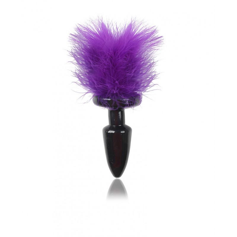 Anal toys / Black Butt Plug Fur Bunny Tail Anal Plug Purple