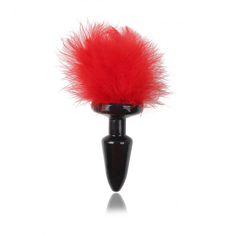 Anal toys / Black Butt Plug Fur Bunny Tail Anal Plug Red