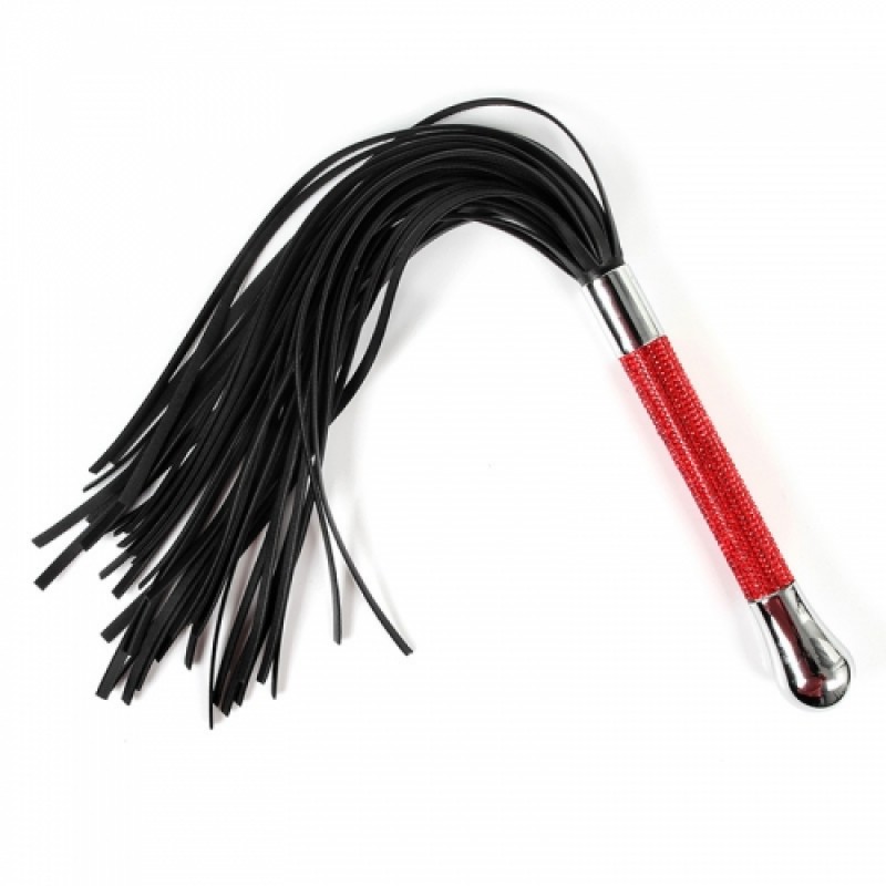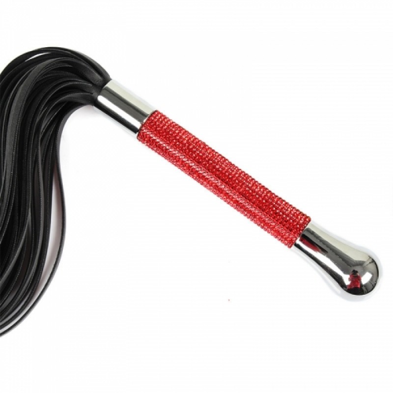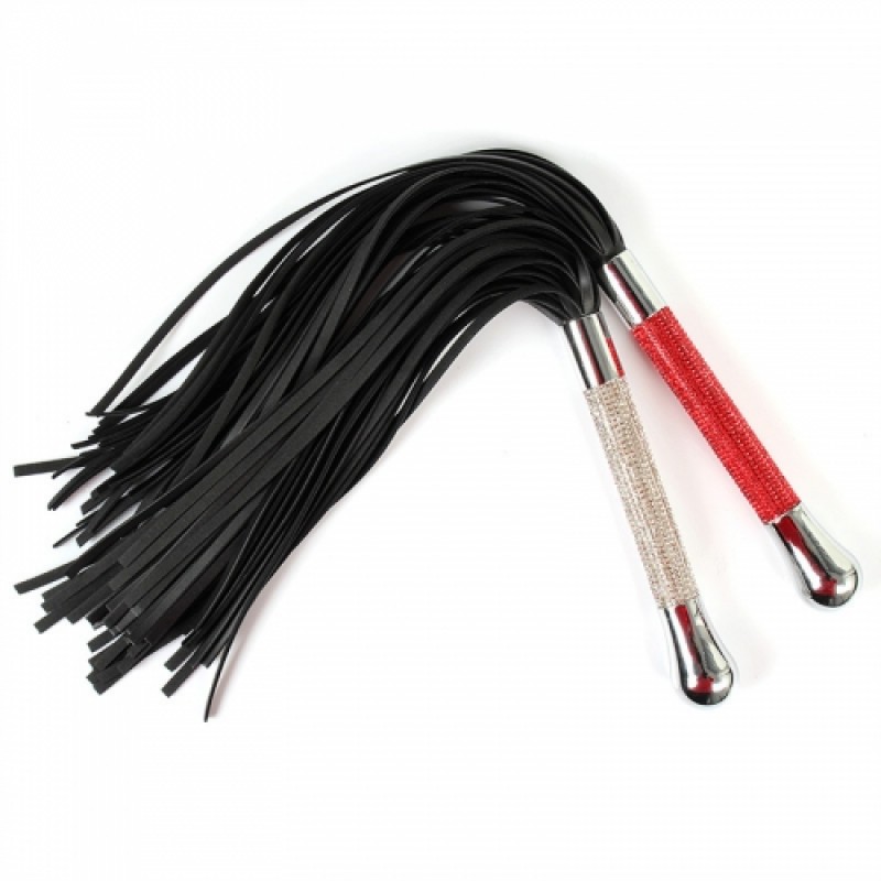 The whip and whips / Black whip with a handle decorated with rhinestones Stick Drill Whip Red