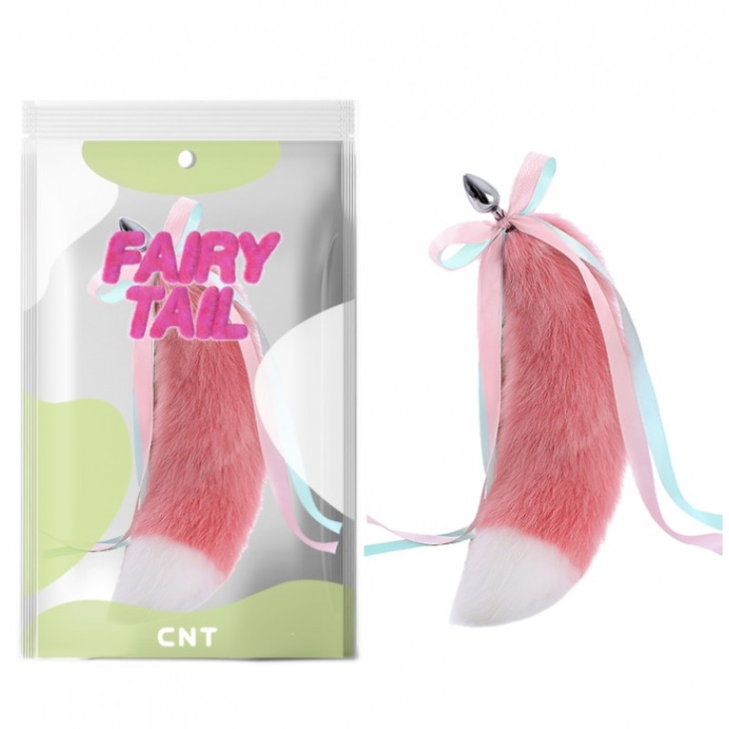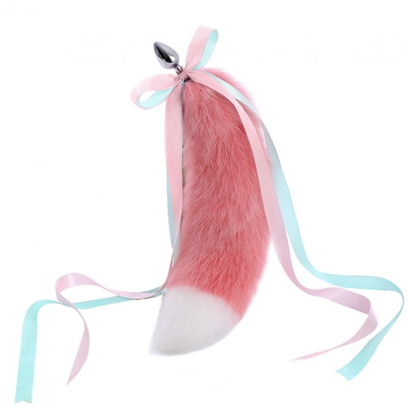 Anal toys / Butt Plug with Fur Tail Bicolor Foxs Tail PlugPink and White 18.5