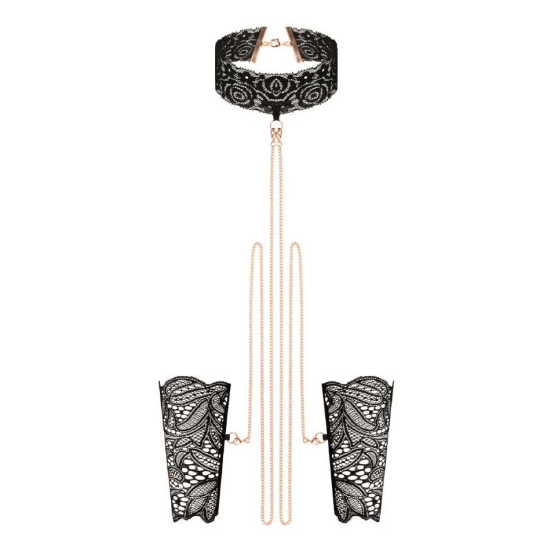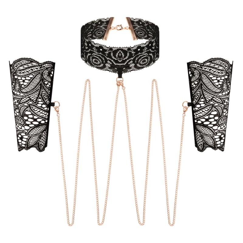 Collars / Choker With Cuffs Rosy Gold Lace Cuffs And Collar Black
