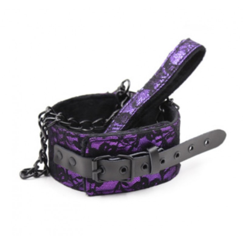 Collars / Collar with leash genuine leather Purple Bondage Neck Collar