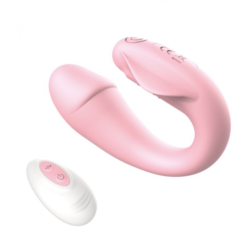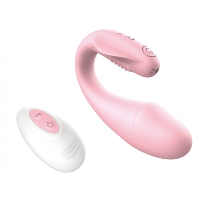 Vibrostimulator / Double vibration stimulator for women Dolphin Strap-on Remote Version Pink