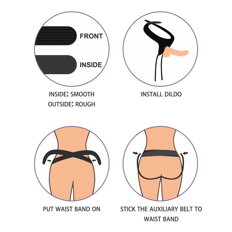 Easy off Easy on adjustable strap on harness. Designed to fit different body shapes and sizes (suit for waist sizes 24~56). The well-designed strap on harness makes it one of the most comfortable and easiest strap-on in the market. The adjustable velcro sides and stretchy webbing create a perfect fit.Put it on or off is just a snap.