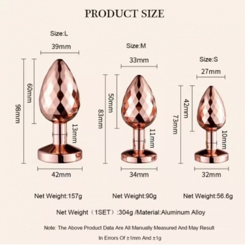 Faceted anal plug in rose gold with stone Rose Gold Anal Plug Medium is an ideal choice for lovers of luxurious accessories and extreme sensations. Made of medical steel, it ensures hygienic use and is easy to sterilize. The length of the plug is 8 cm, and the diameter is 3 cm. These are the optimal parameters for comfortable and safe use.