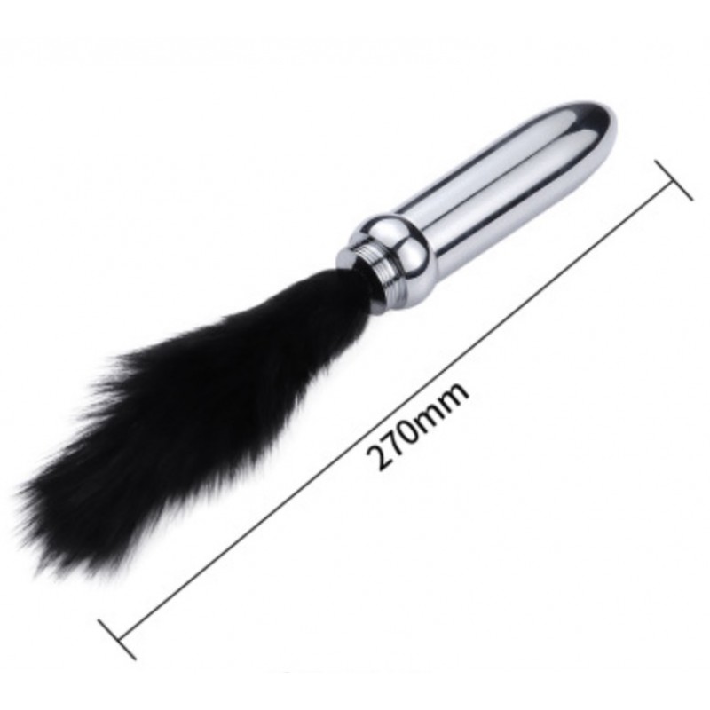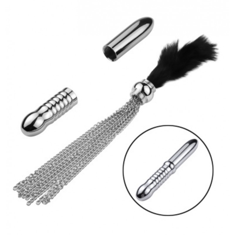 From the coolness of the metal butt plug to the soft touch of feathers to the stimulation of the chain whip, it will ignite your passion. Not only great for erotic play, this toy is also the perfect companion for creating romantic evenings. Show off your flirting skills in front of your lover and make the night full of passion and romance. The stimulation of the metal anal plug and the caressing of the feathers bring you double stimulation. You will feel a deep connection between body and soul. The 3-in-1 toy allows you to choose stimulation based on your mood and desires. Butt plugs, feather paddles and chain whips, you can switch freely to create your own sex experience. Compact and versatile, this toy is the perfect companion when traveling. Take it with you wherever you go and enjoy the excitement. |