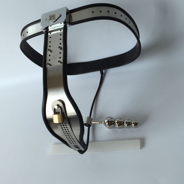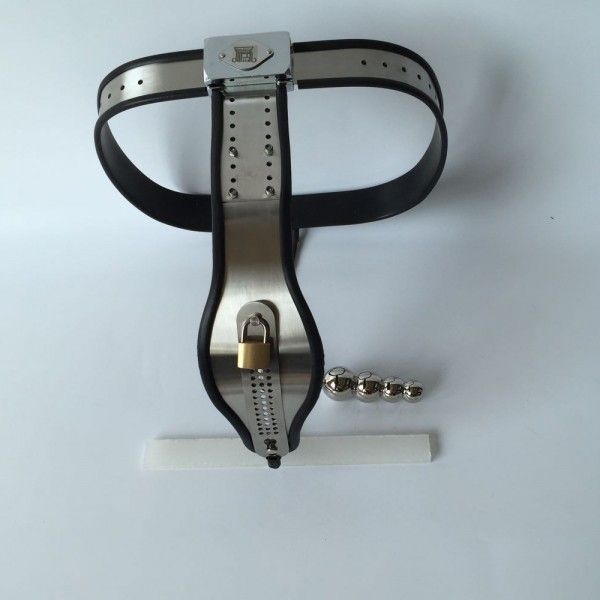 More One Locking Anal Plug Removable. A woman wouldn‘t be able to masturbate herself, without trying to stick a finger through the slit opening (a difficult task indeed). This chastity belt is an excellent long term chastity device for women. Its hand made and professionally finished to ensure restricted access to the vagina and clitoris. Your slave will be brimming with excitement in having her genitals locked and totally at your mercy for release. The metal is nicely polished for an amazing look. This device is wild-wide adjustable, supplied with 2 adjustors. Waist is adjustable between 65 - 97 cm. (2) The weight of this item is approximately 1200g. |