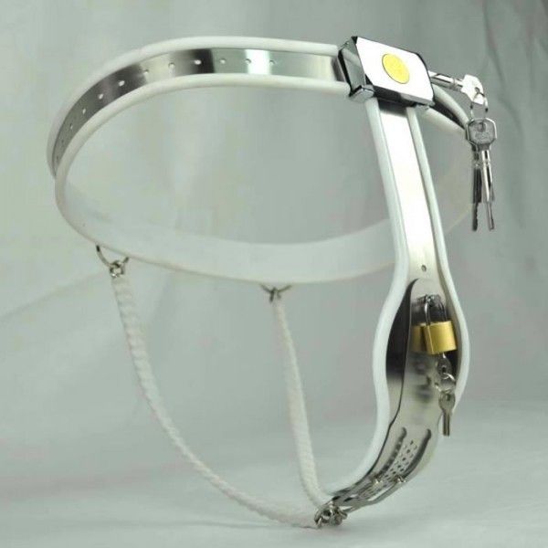 Chastity belt (W) / Female Adjustable Model-Y Stainless Steel Premium Chastity Belt Locking Cover Removable WHITE