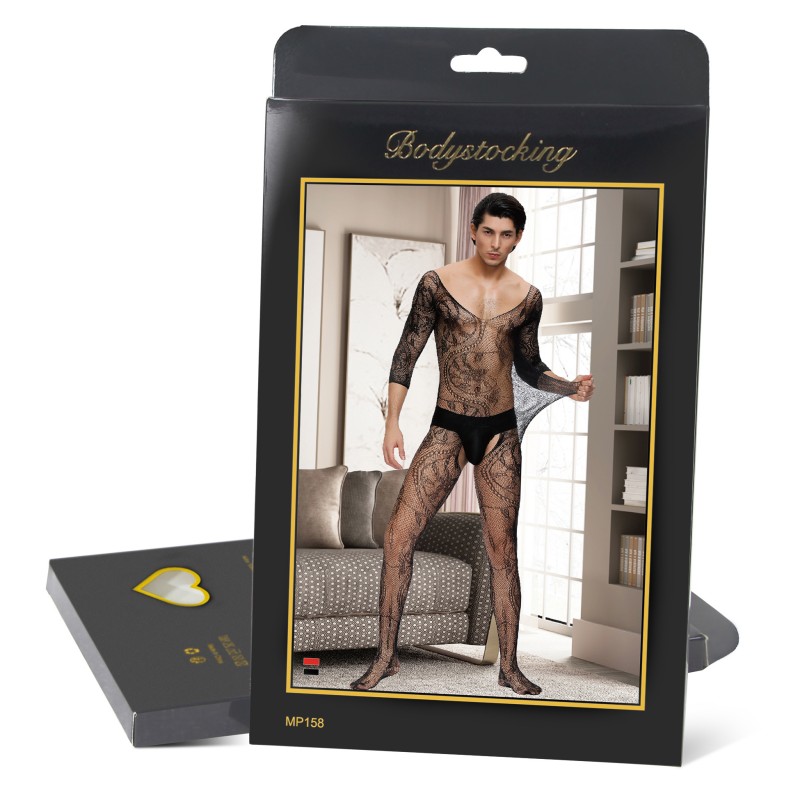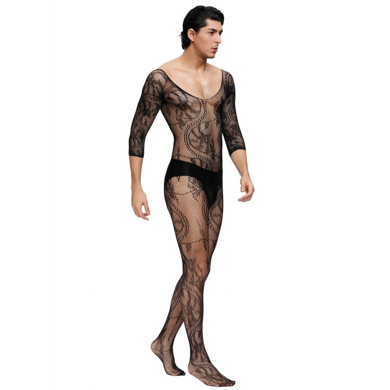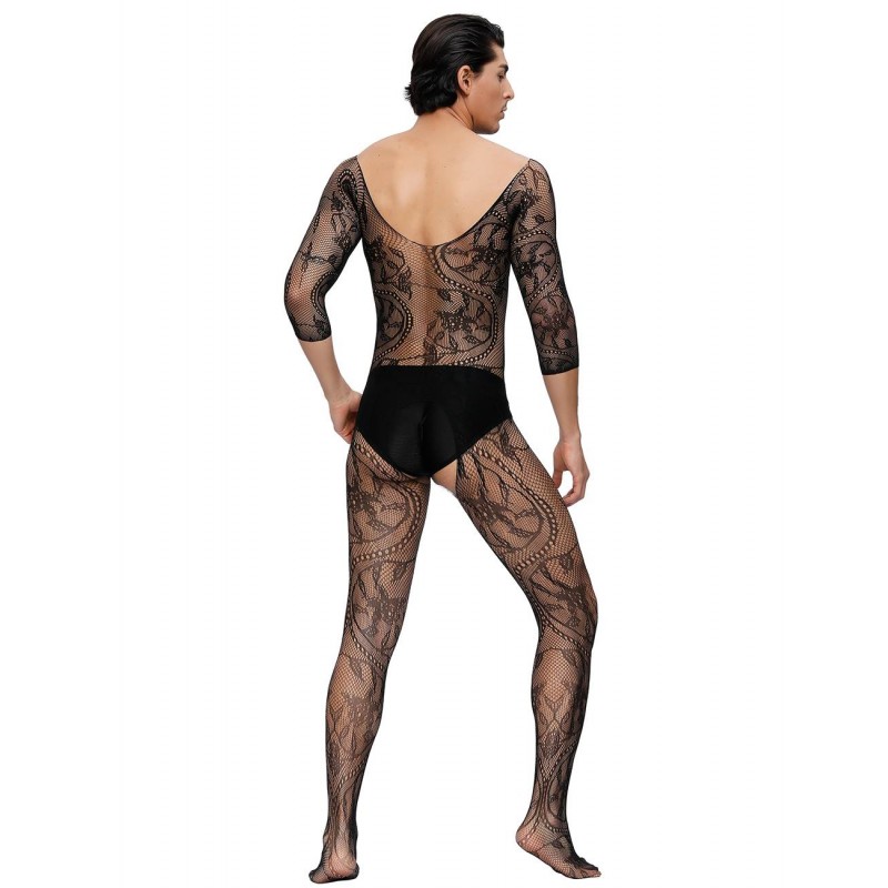Openwork lace bodysuits without cutouts with a floral print are a stylish and unusual option for men. They are made of high-quality nylon, which provides a pleasant feeling on the skin and gives the product lightness and airiness. The black color and floral pattern emphasize masculinity and romance at the same time, making this bodysuit an ideal choice for the most daring and original men.