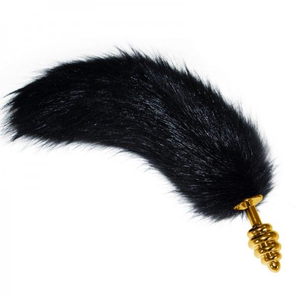 Anal toys / Golden Ribbed Anal Plug Long Black Tail Ribbed