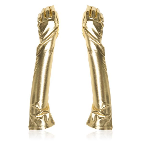 Golden long vinyl gloves. Such a simple accessory, as it may seem at first glance that can absolutely change your image, make it even more sexy and striking. |