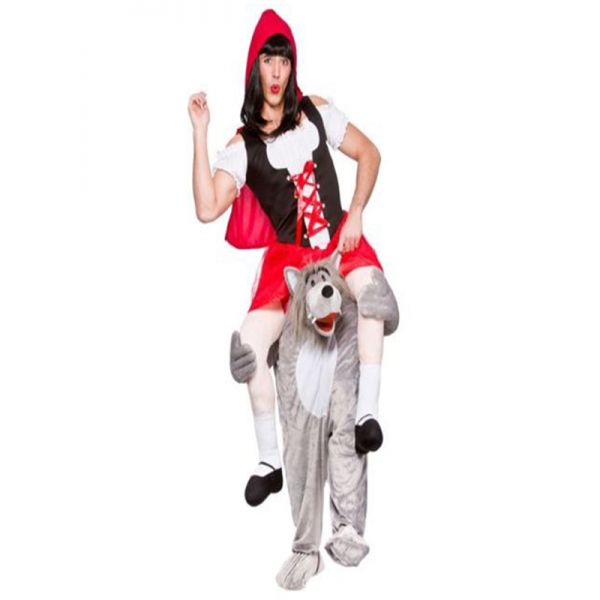 Costumes / Grey One Size Wolf Carry Me Mascot Costume