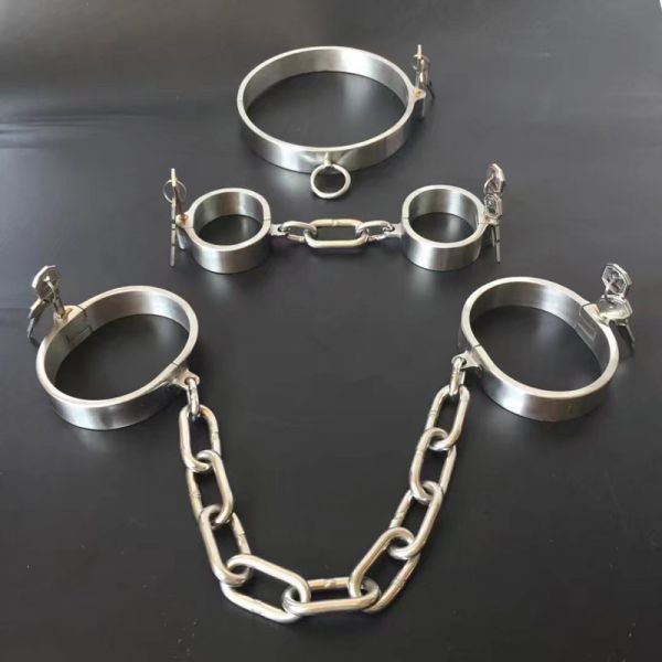 Latest Design Male Bolt Lock Stainless Steel 3 Pieces (1) Ellipse shape (ovoid olivary oval shaped), more comfortable. This is a restraint system that is both high-function and high-fashion. Made from strong, cold, heavy steel allowing long use and wear. Our blacksmith custom makes this item by hand. hand 6.5cm x 5.3cm, thick 0.7CM, high 2.2CM. Foot 8.7cm x 7.2cm, thick 0.7CM, high 2.2CM. Collars 13.5cm, thick 0.7CM, high 2.2CM. (2) The weight of this item is approximately 1315g. |