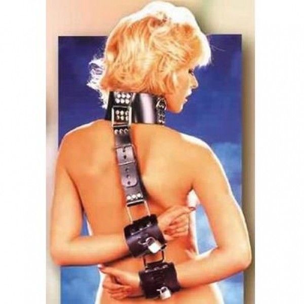 Black bondage is made of natural leather. Consists of cuffs and a wide collar. Adjustable straps provide durability and comfort. The collar is decorated with lots of metallic sparkles. The set includes 3 brass lock with keys. Dimensions: the inner diamete |