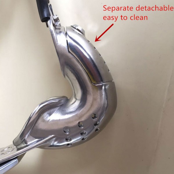 (1) The Enforcer is excellent for long term use by most men. Its hand made and professionally finished to ensure he has no access to his private parts. You will enjoy watching the frustration in his face as he can‘t not touch any area of his genitals. When secured in the device his penis is forced between his legs with the L-shaped tube preventing him from getting a full erection. No pain should be felt just slight discomfort as the flow of blood to his penis tries to create a major hard on. Your slave will be brimming with excitement in having his genitals locked. The metal is nicely polished for an amazing look. This device is wild-wide adjustable, supplied with 2 adjustors and 8 rivets. Waist is adjustable between 65 - 110 cm. (2) The weight of this item is approximately 950g. |