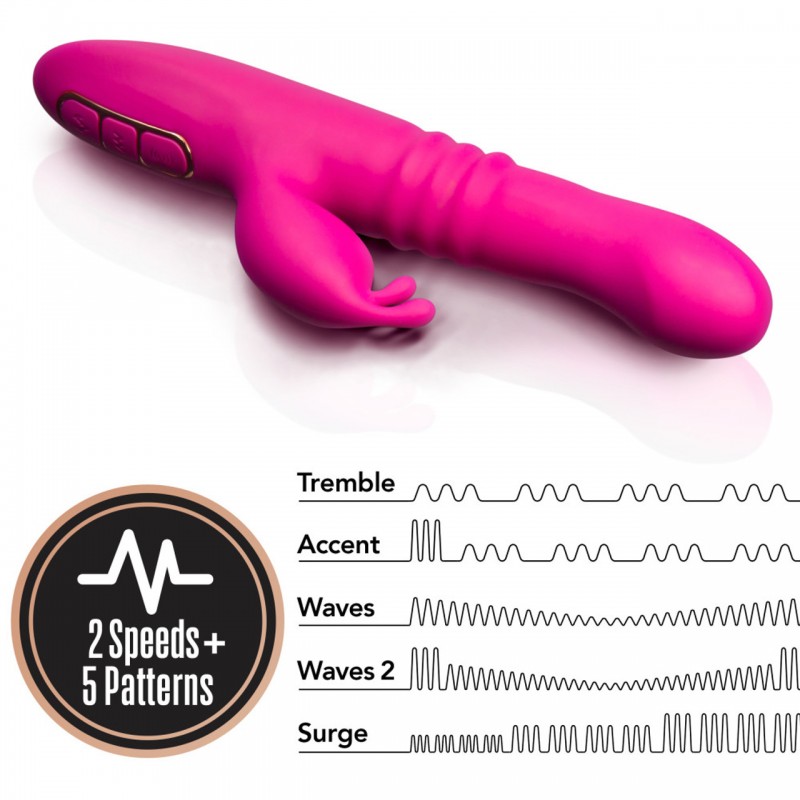 Shaft Gyrates, Thrusts With 7 Speeds To Choose From. Soft Clit Stimulator Features 5 Vibrating. Patterns & 2 Speeds. Tongue Like Design Rapidly Flickers. Heated Shaft For Comfort. USB Rechargeable. Cable Included. 9.5 Inch Length (5 Inch Insertable) x 1.25 Inch Width. |