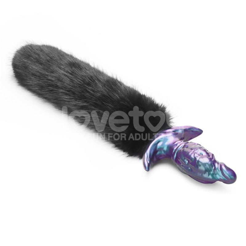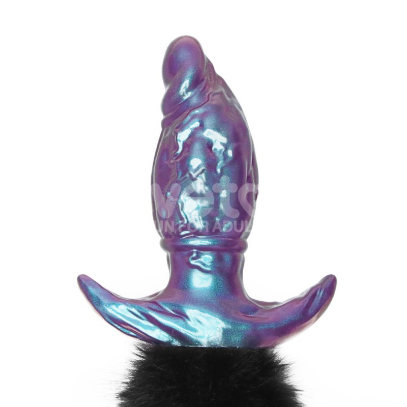 Step into fantasy with the MystiTail anal plug-a uniquely sculpted toy designed for those who desire out-of-this-world pleasure. Crafted from high-quality, body-safe silicone, its soft, skin-friendly surface feels luxurious and flexible with every use. The plugs alien-inspired shape delivers unexpected angles and sensations, while its shimmering purple iridescent finish adds a magical visual element. Attached is a 14-inch black faux fur tail that adds a touch of playful mystery and role-play potential. Thanks to the secure screw-in mechanism, the tail can be easily removed, allowing the plug to be used on its own.