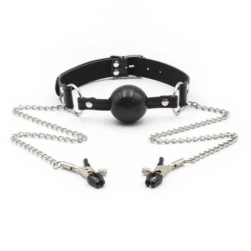 This unique set of gag and nipple clamps will be a real find for BDSM lovers. With its help, you and your woman will be able to realize your wildest and most immodest fantasies. Indulge in unforgettable entertainment and get maximum pleasure from intimacy. Believe me, your life will sparkle with new colors. A set of gag and nipple clamps for erotic games will diversify your sex life. Be freer and bolder, realize your sexual fantasies with your partner, enjoy erotic play with this set.