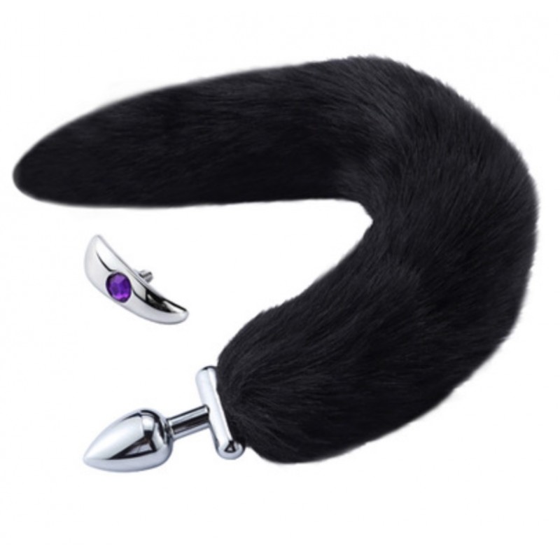 Anal toys / Puffy Tail Anal Plug Deformable Fox Tail Metal Anal Plug Black