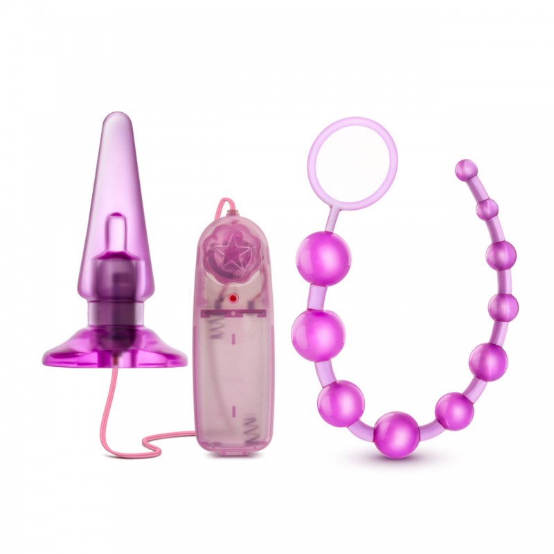 The Quickie Kit - Pink Anal makes booty play comfortable and exciting. This kit delivers a soft, flexible butt plug with an adjustable vibration intensity. Splashproof for easy cleaning, this plug is designed with a tapered tip that makes it a breeze to insert. And for deeper stimulation, the string of graduated size anal beads offers over 10 inches of insertable length. Perfect for any anal play beginner, the beads petite width is simple to insert. All toys are made from lab-tested body safe materials that are easy to clean: just wash with gentle soap and water, and let air-dry for best results. Requires 2 AA batteries. Not Included.
