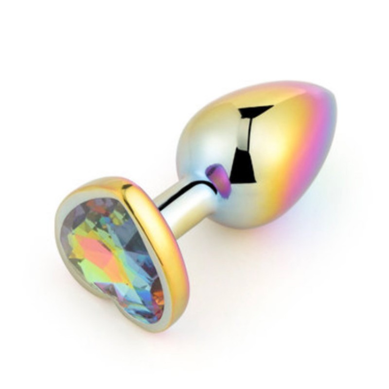 Anal toys / Rainbow Butt Plug with Heart Metal Anal Plug Medium