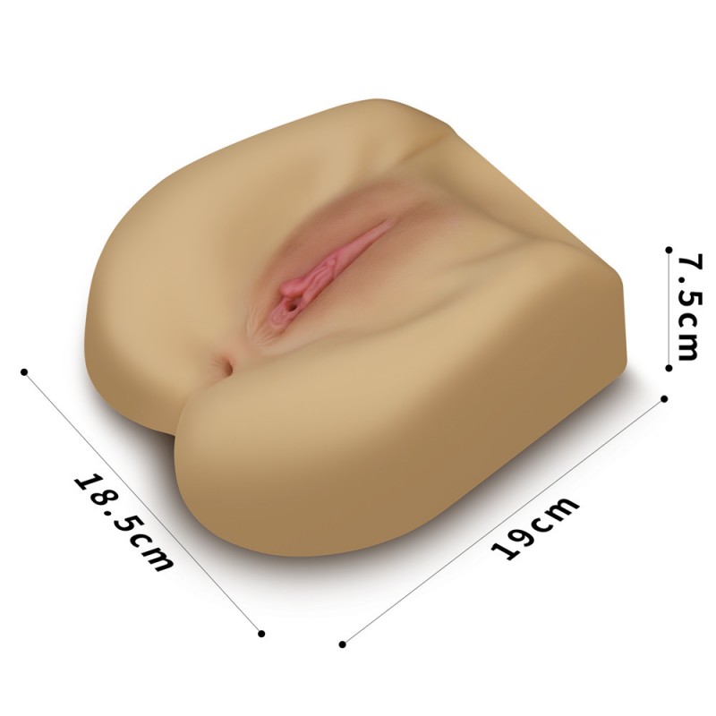 Beautifully designed with a nice spread vagina and sexy pinkish labia. This realistic private part is molded from a beautiful model for the most authentic experience. Measuring 7.5 x 7.28 x 2.9 (19 x 18.5 x 7.5cm) with a net weight of 3.23 lb (1.46kg), her elegant body easily handles years of thrusting. Vagina depth 4.7, anus depth 5.9 allow men of all sizes to enjoy extra orgasm. The designed vaginal tunnel has a nest of nubs waiting to stroke you as you slide deep inside her. The butt hole is much tighter and full of numerous curves. You can lay this beauty down flat, or hold her close to you while you explore either of her two intricate inner passages. Made from body-safe TPE, this ultra-soft, lifelike doll offers a non-toxic, sensitive skin-friendly and all-around safe experience. Just experiment with it by finding the best positions and swing it back and forth for the most fun. Very easy to clean, you can flush the channel directly with running water and wipe dry. Use plenty of lube to help entry. It may seems too tight for the first time, the elasticity will increase after a few uses.