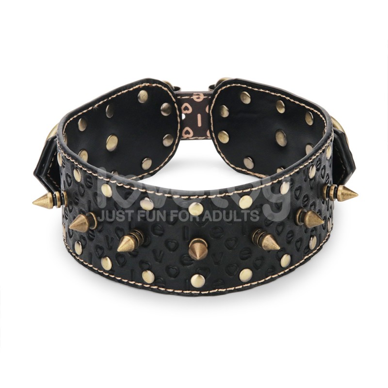 Introducing the Vintage Spike Collar from Lovetoy: Command Attention. Crafted from premium PU, this statement piece delivers enduring quality and striking vintage rebellion. Bold mixed metal studs-featuring both rounded and pointed spikes-create an unmistakable, edgy aesthetic. The distinctive layered design showcases a wider black band foundation contrasted by a narrower brown strap secured with buckle hardware. This artful construction creates captivating depth and texture.