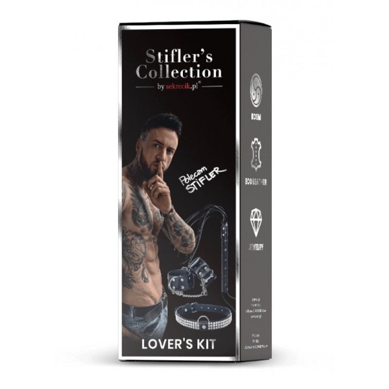 Exclusive collar made of ecological and durable leather pleasant to the touch and comfortable to wear, studded with silver crystals. It has a ring to which you can attach a leash, thanks to which we will gain even more control over the partner. Whip made of ecological leather, has leather straps, is very durable and strong. It can be stroked and caressed. Handcuffs made of ecological leather, decorated with metal accessories, comfortable to wear. The handcuffs connected with a silver chain can be detached from each other thanks to the clips mounted on both sides of the chain. |