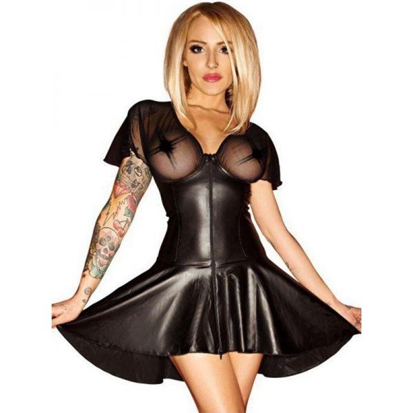 Gorgeous sexy dress made of black vinyl with half open bust. Black vinyl creates an unbeatable combination for the image of the indomitable lionesses sensual and romantic person. |