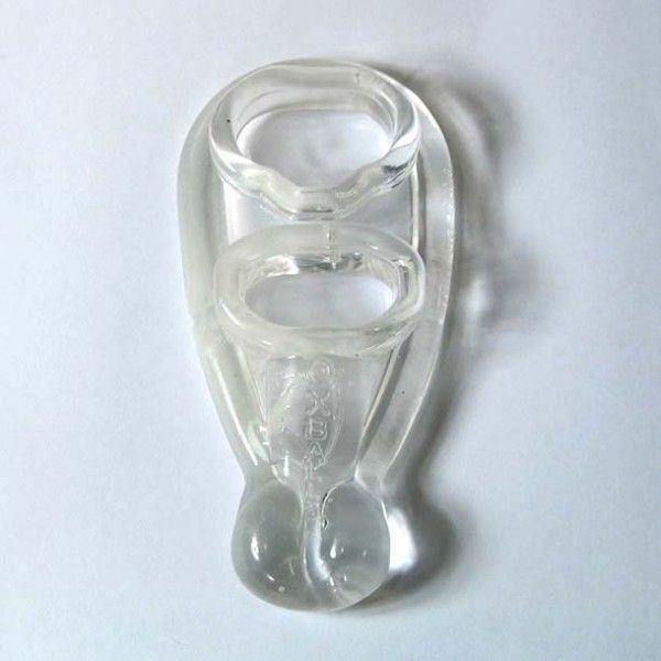 The retainer is made of high quality medical silicone. The device fully surrounds the penis and testicles. |