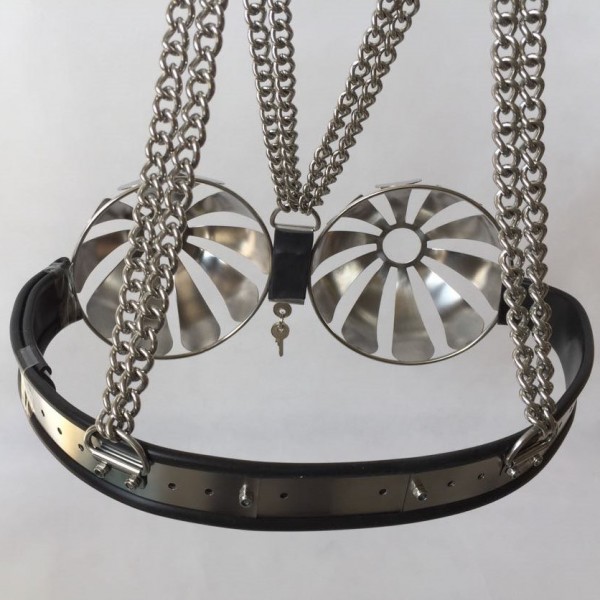 Stainless steel petals Bikini sexy bra The cup is 11.5 cm in diameter, Bust adjustable range is 54-99cm. Weight: 900g. |
