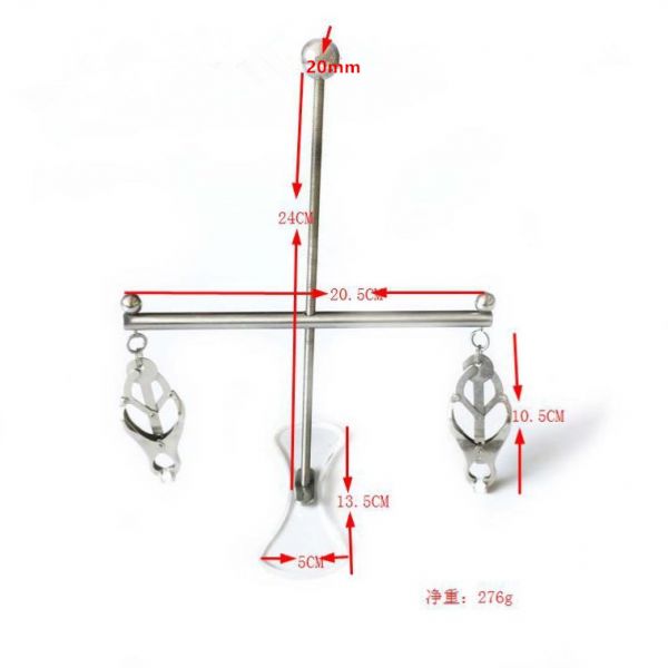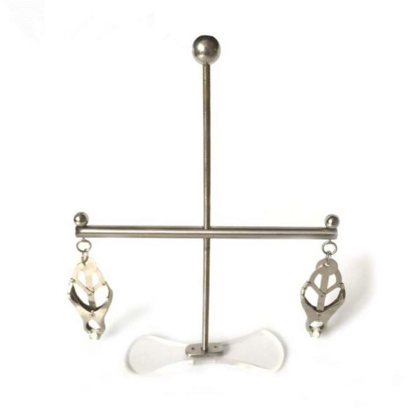 A simple yet very efficient design to help you squeeze and pull on your subs nipples. The Tower of Pain includes to two Japanese Clover Clamps at each end of clear rod. Once claps are attached to their nipples, place the rest plate on top of there sternum and then screw in the ball rod and start stretching their nips! Simply turn the ball to pull the clear rod further away from their chest, making the clover clamps pull more. Keep them on the edge as they see you reach for the ball to turn it. Tower of Pain disassembles very easily for you to put away and put away or pack in your luggage. |