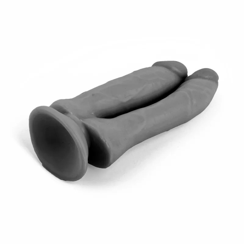 Authentic detailing meets perfect proportions with the Mr. Rude - Double Penetrator Suction Cup Dildo of prodigious penises. Impressive in both looks and size, and with a solid suction cup for versatile play, these high-quality cocks are guaranteed to hit the spot and stay hard all night long. To use this dildo with a harness, youll need an O-ring with a 1.4 inch diameter.