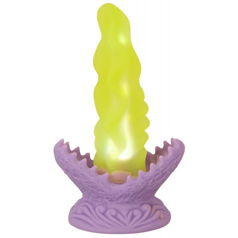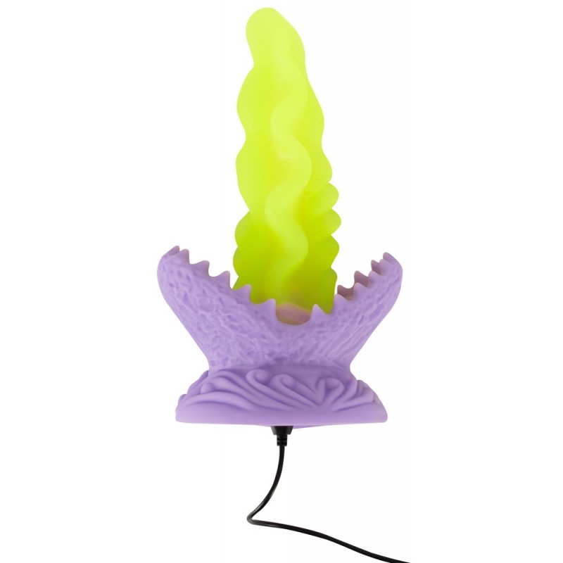 Dildo in a fantasy design. LED lights (10 modes). With a strong suction cup. With a very stimulating texture. Gentle tip. Bendy and flexible. Velvety soft Liquid Silicone. Extremely soft surface. Rechargeable – includes a USB cable. A fabulous dildo plant from the garden of pleasure!