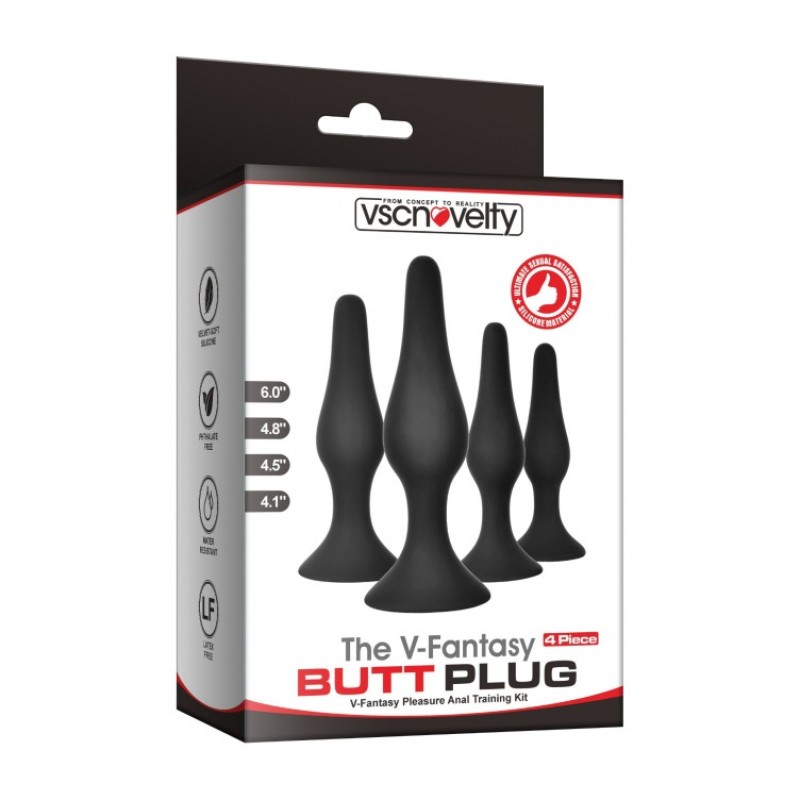 Key Features: Quaternate graduated butt plugs for progressive anal play. Slender rounded tips makes insertion comfortable and easy. Flared base allows for hands-free stimulation. Made of Latex&Phthalate Free Silicone.
