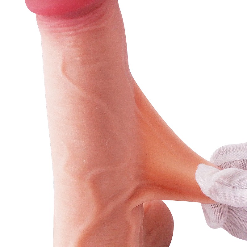 Experience lifelike sensations with our premium dildo, crafted from a realistic dual-layer sliding-skin material. The special dual density technology creates a sensation that mimics the feel of an erect penis, featuring a soft outer skin and a satisfyingly firm inner core.