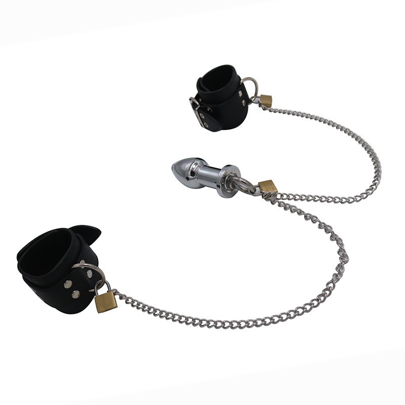 Вместе с наручниками идет анальная пробка, которая крепится на цепочках. Она имеет удобную форму для введения и приятно стимулирует анус во время интимных игр. Наручники и анальная пробка дополняют друг друга, создавая уникальные ощущения.