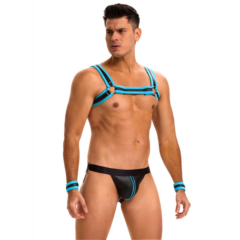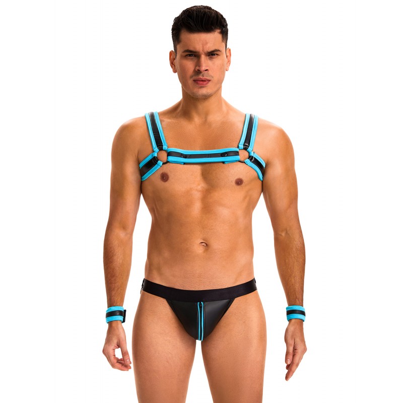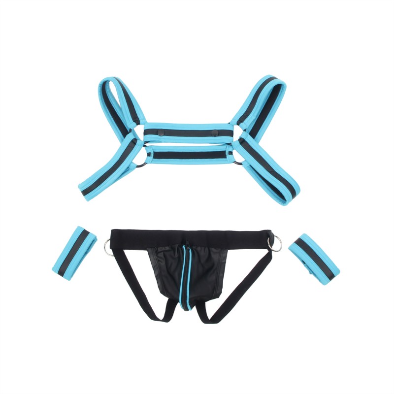 Комплект фетиш белья для мужчин Blue Men Sexy Harness Zipper Underwear Set - это стильное и смелое решение для тех, кто ценит оригинальность и страсть в каждом элементе гардероба. Основным материалом комплекта выступает высококачественная эко-кожа (PU leather), которая отличается прочностью, привлекательным внешним видом и приятной на ощупь текстурой. Яркий голубой цвет добавляет комплекту выразительности и делает его особенно заметным.