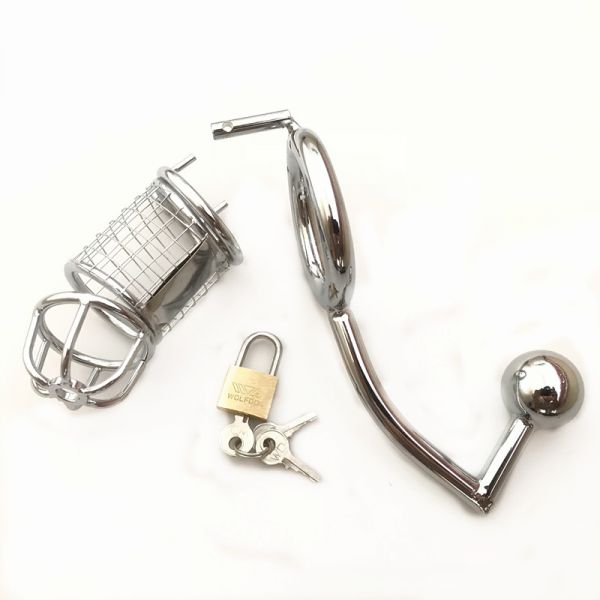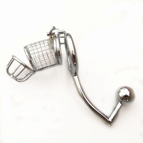 клетка для головки, прикрепленная к клетке для пениса и замку. Далее все это соединено с устройством для ануса в виде шарика Клетка изготовлена |