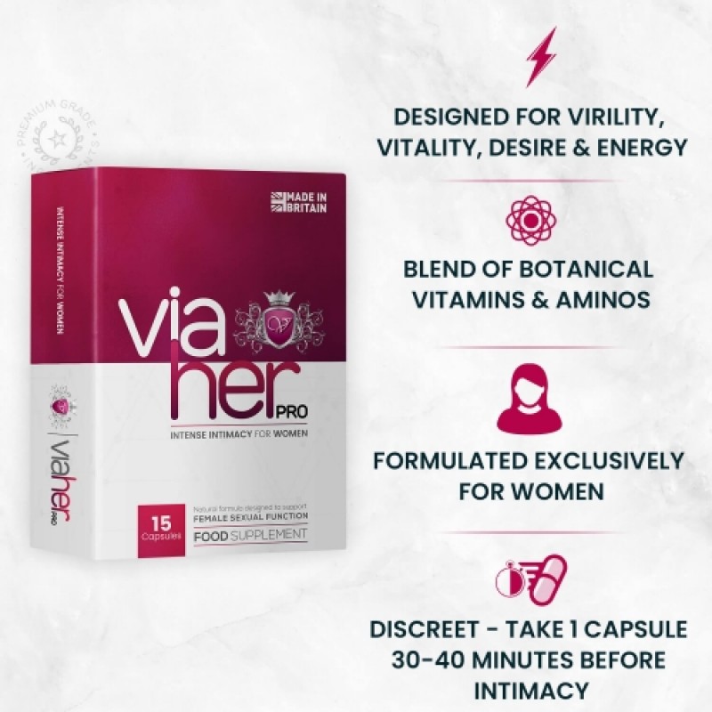 Капсулы Viaher Pro - это добавка, повышающая интимный опыт, разработанная исключительно для женщин. Этот продукт состоит из растительной формулы, которая была выбрана, чтобы помочь обеспечить энергию и желание, поэтому встречи могут быть максимально приятными. Принимать всего 2 капсулы легко и всего за несколько минут в течение дня - они могут вписаться в любой график!
