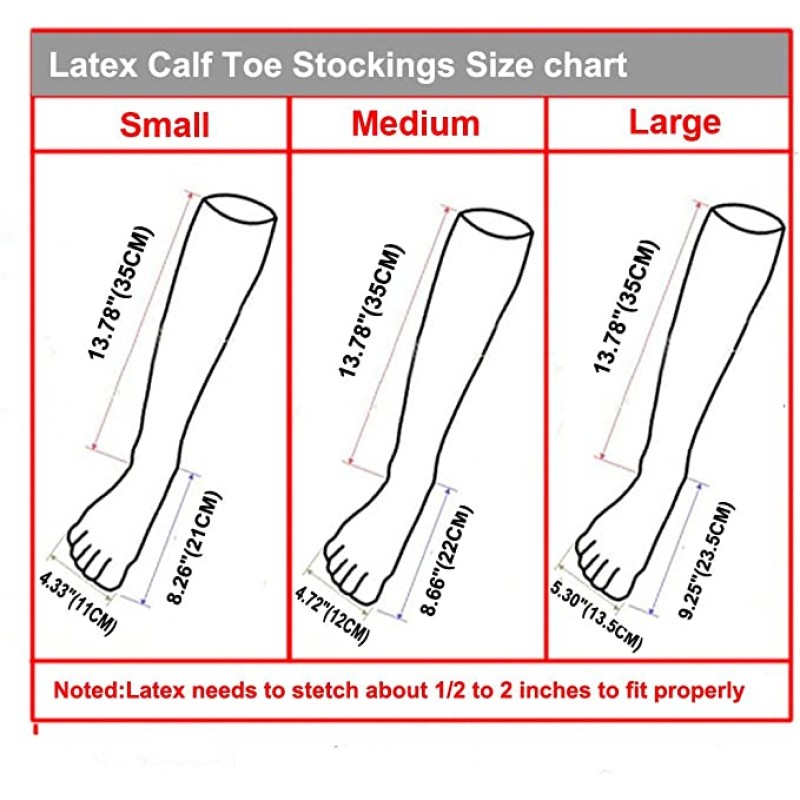 Носки с пятью пальцами из 100% натурального латекса. Ультрастойкий, долговечный. 14-дюймовые бесшовные носки с плотным прилеганием до колен. Они являются одними из лучших в мире формованных изделий из латекса. Огромный латекс хорош для вечеринок, Хэллоуина, Рождества, клубной одежды, вечеринок, косплея и нарядов. Стопа и запястье 22 см, длина стопы 23 см, ширина 9 см, высота цилиндра 32-34, 5 см.